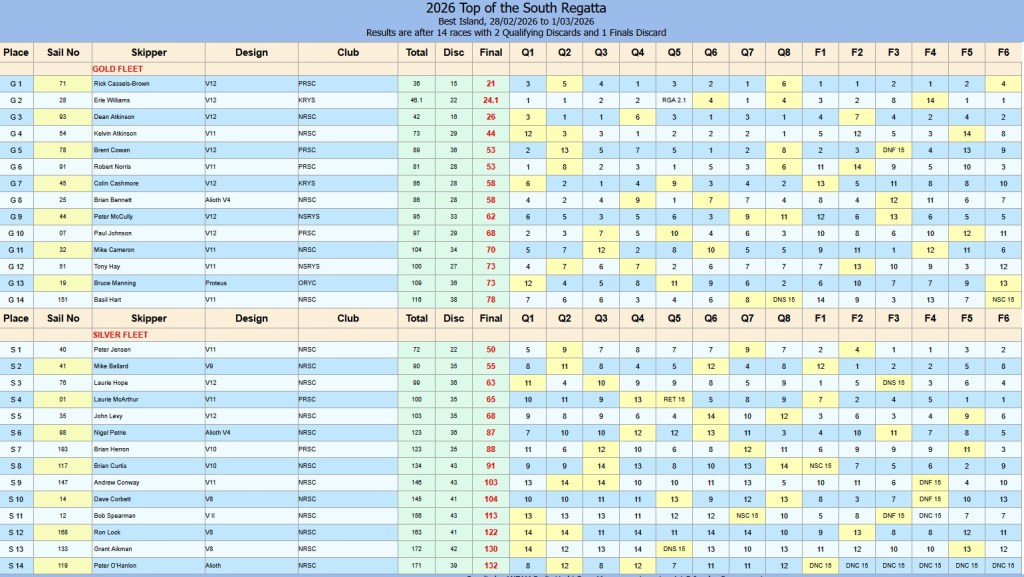 Final Results – 2026 Top of the South IOM Regatta (28 Feb-1 Mar)