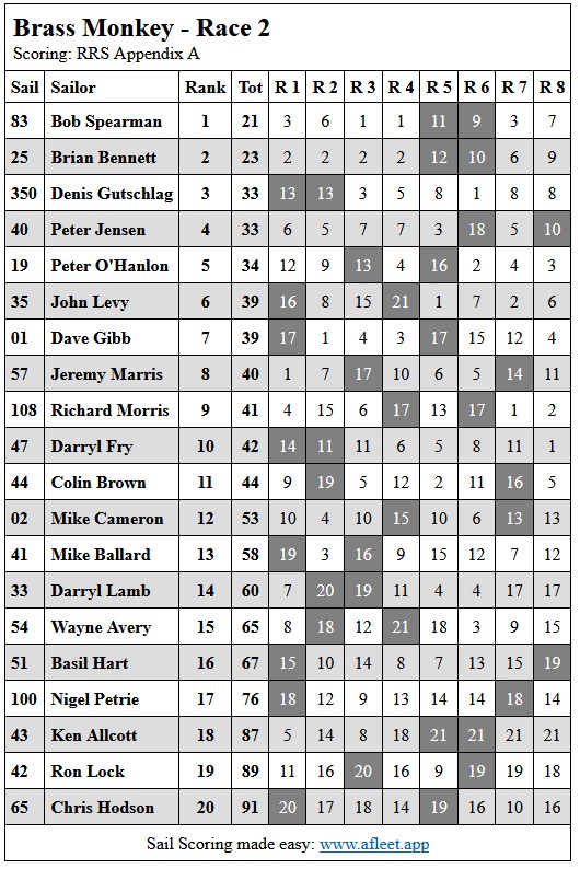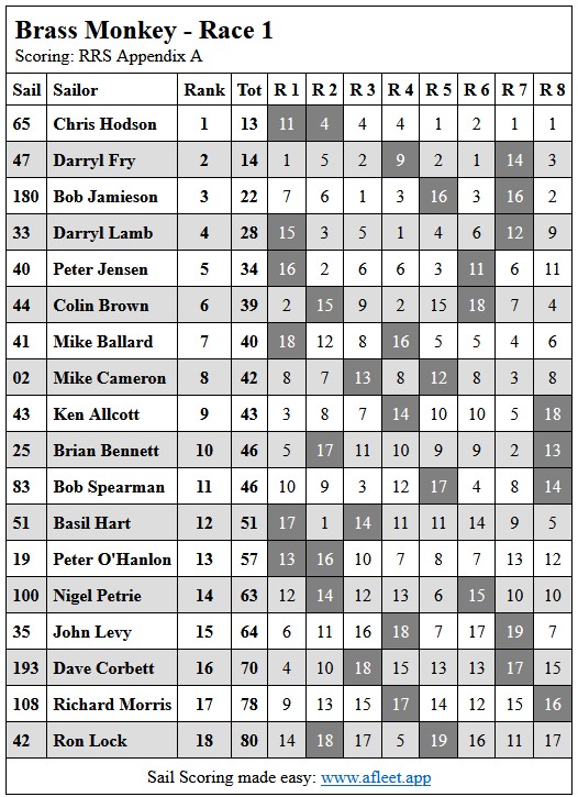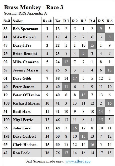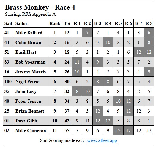 2024 Brass Monkey Handicap Link to trophy information Race 1, Sun 5 May Race 2, Sun 12 May Race 3, Sun 19 Apr Race 4, Sun 26 May Home Sailing Calendar Sailing Handicaps Club Contacts Photo Gallery