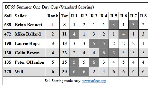 2024 DF65 Summer One Day Cup Link to trophy information Sat 27 Jan Home Sailing Calendar Sailing Handicaps Club Contacts Photo Gallery