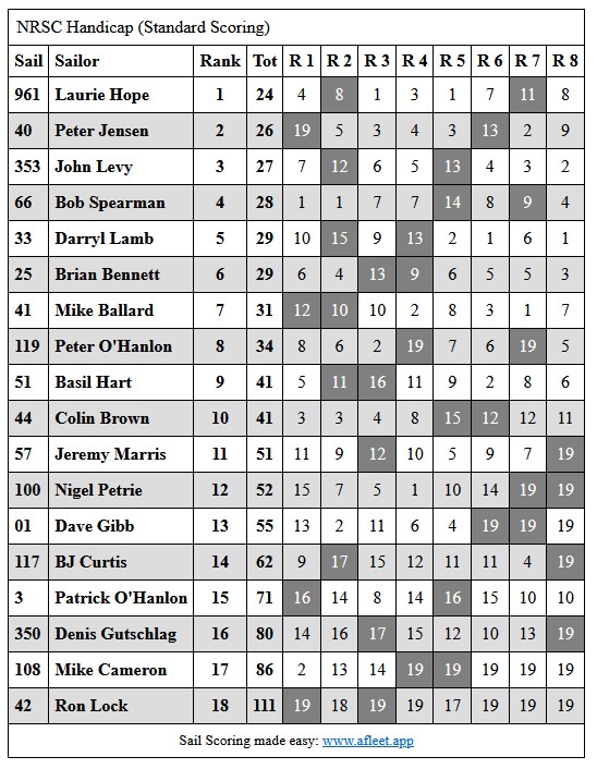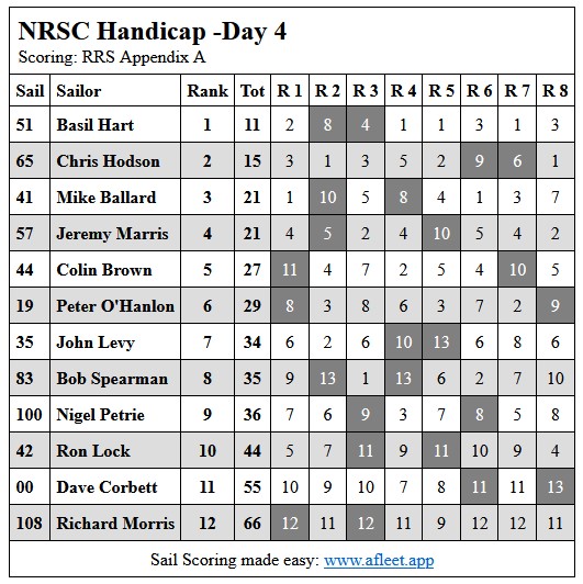 2024 NRSC Handicap Link to trophy information Race 1, Sun 21 Jan Race 2, Sun 11 Feb Race 3, Sun 25 Feb Race 4, Sun 30 Jun Home Sailing Calendar Sailing Handicaps Club Contacts Photo Gallery