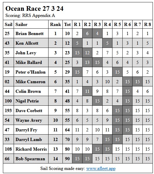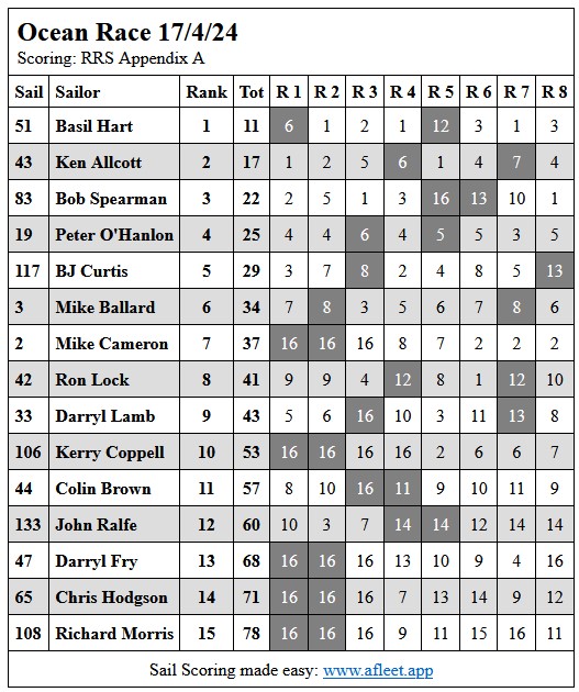 2024 Ocean Race series Wed 20 Mar Wed 27 Mar Wed 17 Apr Home Sailing Calendar Sailing Handicaps Club Contacts Photo Gallery