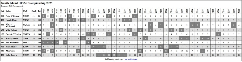 2025 DF65 South Island Championship Held 22-23 November at Best Island Home Sailing Calendar Sailing Handicaps Club Contacts Photo Gallery