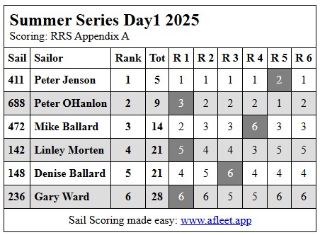 2025 DF65 Summer series Link to trophy information Race 1, Sat 1 Feb Race 2, Sat 8 Feb Race 3, Sat 15 Feb Race 4, Sat 22 Feb Home Sailing Calendar Sailing Handicaps Club Contacts Photo Gallery