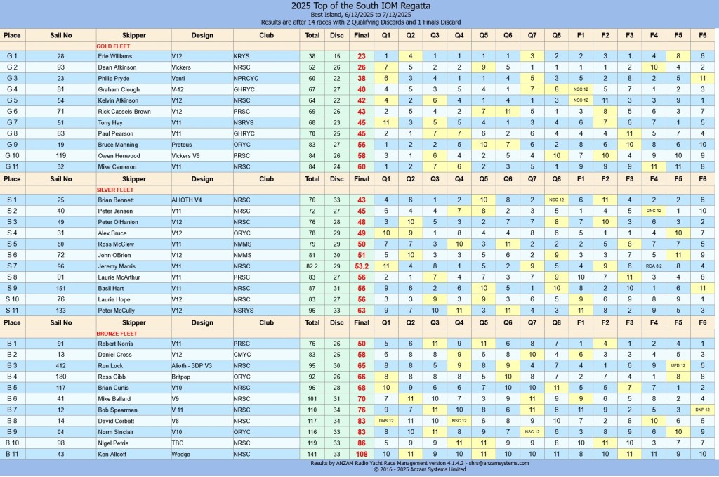 2025 Top of the South IOM Regatta Sailed 6-7 December 2025 – Final results Home Sailing Calendar Sailing Handicaps Club Contacts Photo Gallery