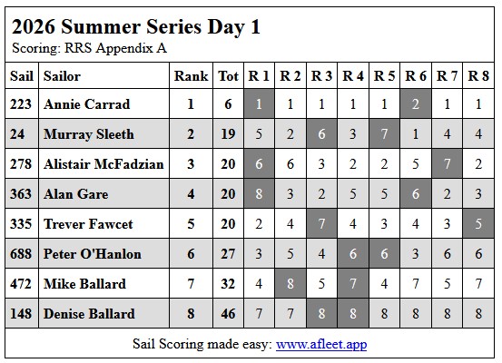 2026 DF65 Summer series Link to trophy information Race 1, Sat 8 Feb Race 2 Race 3 Race 4 Home Sailing Calendar Sailing Handicaps Club Contacts Photo Gallery